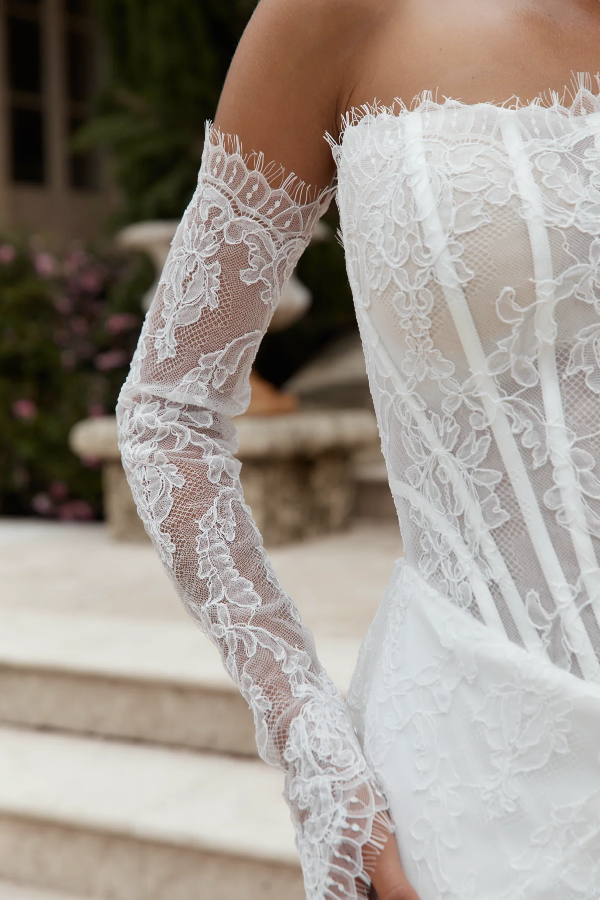 The CLAREMONT VEIL, a final touch to any bridal look. Crafted from an airy tulle, and finished with our signature Claremont lace trim, a scalloped edge, with soft eyelash detailing, it frames the silhouette with effortless elegance ā designed to elevate any bridal look.Ā
